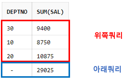 - ORDER BY 절은 제일 아래쪽 쿼리에만 작성할 수 있다