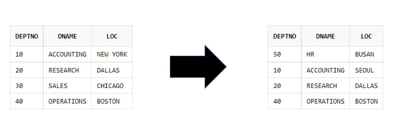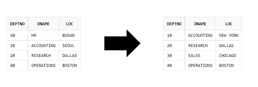 UPDATE DEPT SET LOC = 'SEOUL' WHERE DEPTNO = 10;