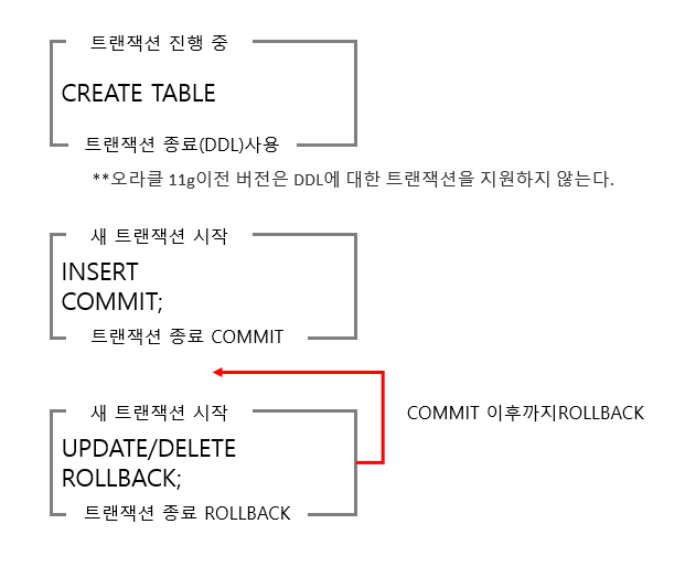 트랜잭션은 DML과 DDL 명령어를 포함할 수 있으며, 연산의 집합이지만 논리적으론 하나로 보아야 하며 데이터베이스의 일관성과 무결성을 유지하기 위해 사용된다.
