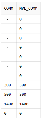 SELECT COMM, NVL(COMM, 0) NVL_COMM FROM EMP