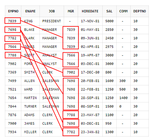 CONNECT BY PRIOR empno = mgr;