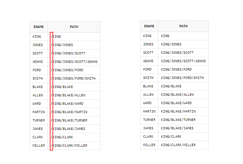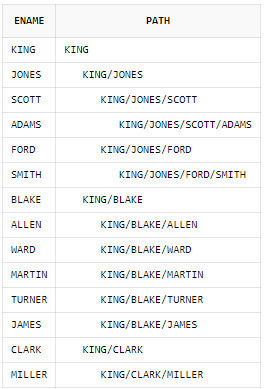 LTRIM(SYS_CONNECT_BY_PATH(ename, '/'), '/') as PATH
