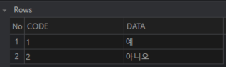 데이터셋 값이 1이라면 예가, 2라면 아니오가 콤보박스 텍스트로 표현된다.