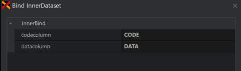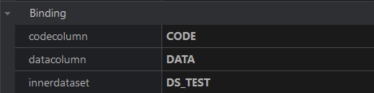 2. 혹은 Properties > Binding란에서 직접 innerdataset과 code, data column을 매핑시켜주거나 Script 상에서 set 함수를 이용해 매핑가능하다.