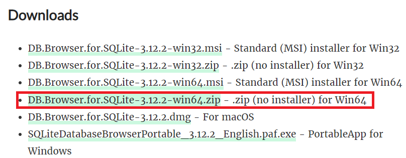 https://sqlitebrowser.org/ 홈페이지 접속 후 최신버전을 다운로드한다.
