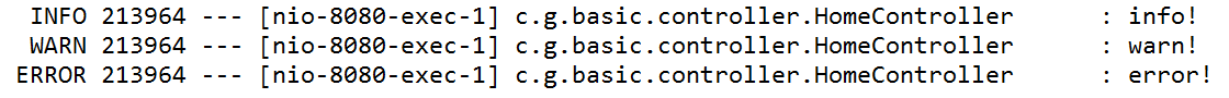 - 작성 후 http://localhost:8080/home 에 접속하면 콘솔창에 다음처럼 찍힐 것이다.