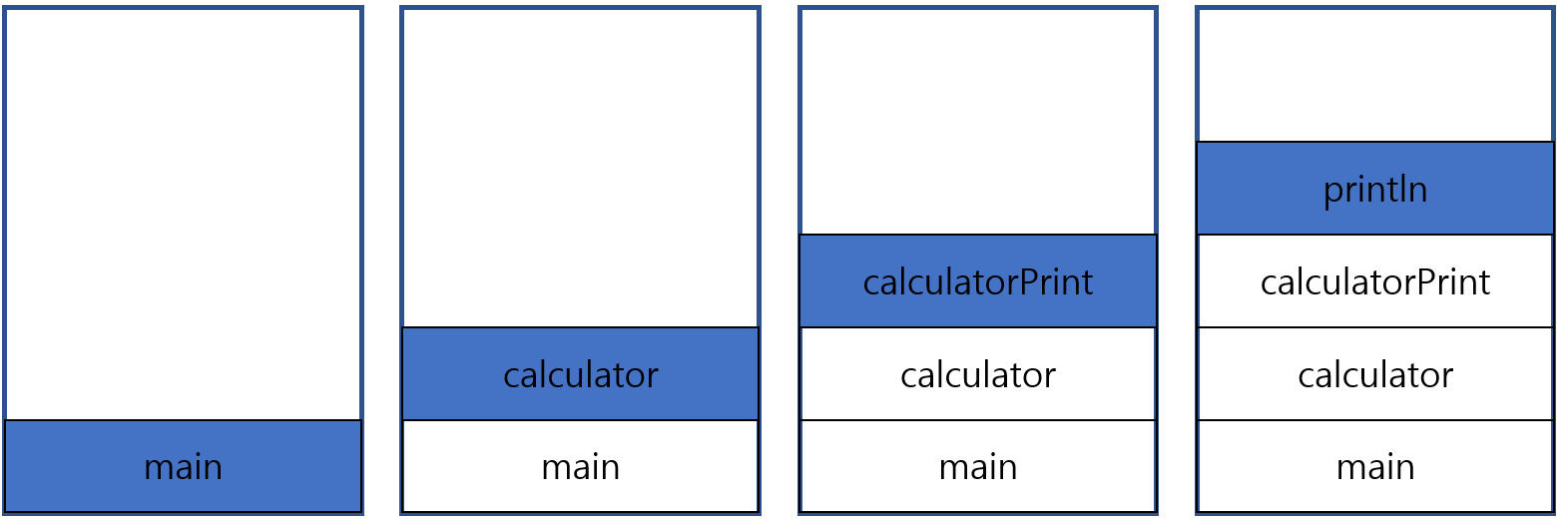 - main 메서드 안에서 calculator() 를 호출하면 main 메서드는 대기상태로 변경되며 호출된 함수가 수행된다.