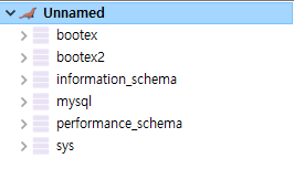 테스트를 위한 데이터베이스를 생성해준다. bootex가 미리 생성되어있으니 bootex2로 생성해주었다. 아무 이름으로 해도 상관없다.