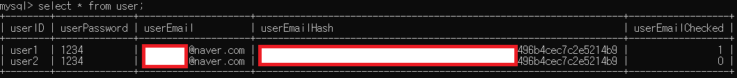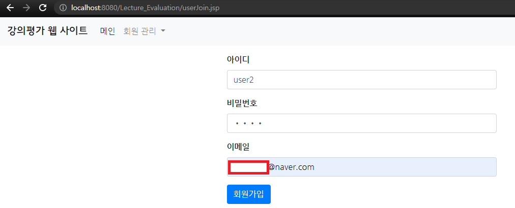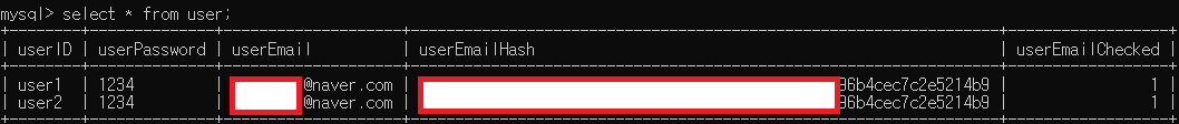 입력한 userID가 테이블에서 조회되면 가입이 불가능하며, 정상 가입이 진행되면 이메일 인증 페이지로 이동한다.