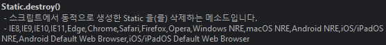 화면에 생성된 모든(정적/동적) 컴포넌트들은 this.components에서 가져올 수 있다. 동적 컴포넌트는 마지막에 생성되었기 때문에 배열의 마지막에 위치하므로 this.components의 마지막 요소부터 생성한 동적 그리드 갯수 만큼 Static.destroy를 수행해주면 동적 컴포넌트가 제거된다.